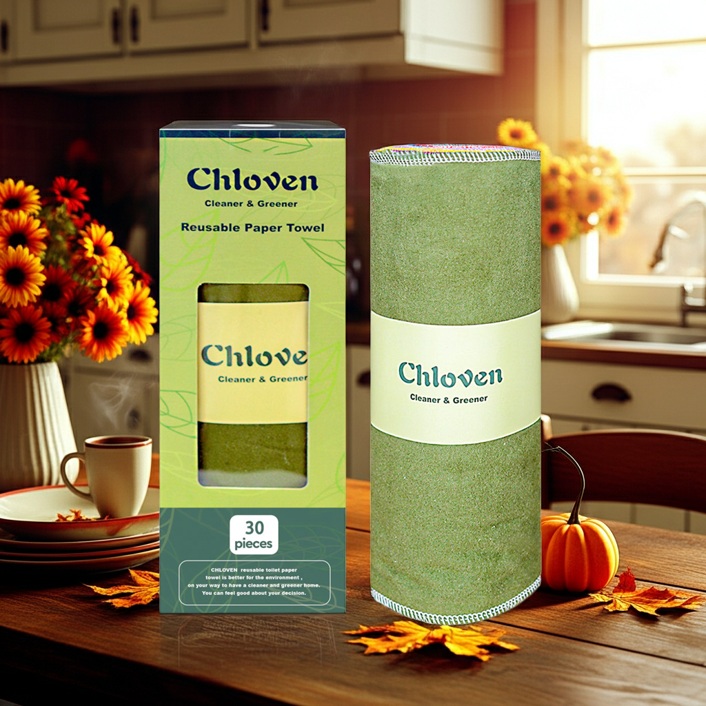 Chloven 30-Pack Reusable Jumbo Cotton Towels – Washable Eco-Friendly Cloth Napkins on Durable Roll