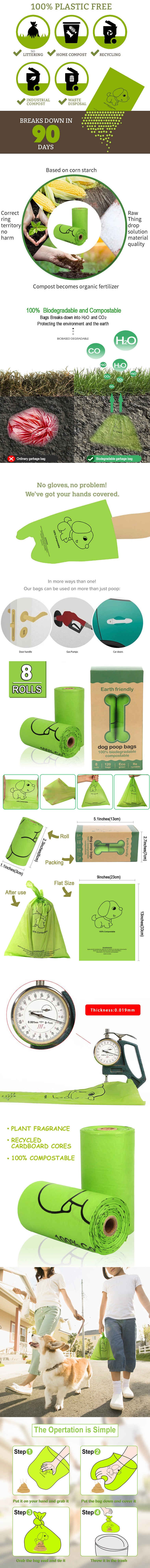 Chloven 8 Rolls Biodegradable Pet Waste Bags – Fully Compostable Corn Starch Poop Bags | Eco-Friendly, Zero-Waste Doggie Bags for Easy Cleanup