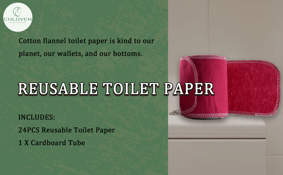 Chloven 24‑Pack Reusable Cloth Toilet Paper – Soft, Washable & Absorbent Wipes with Durable Roll | Zero‑Waste Alternative