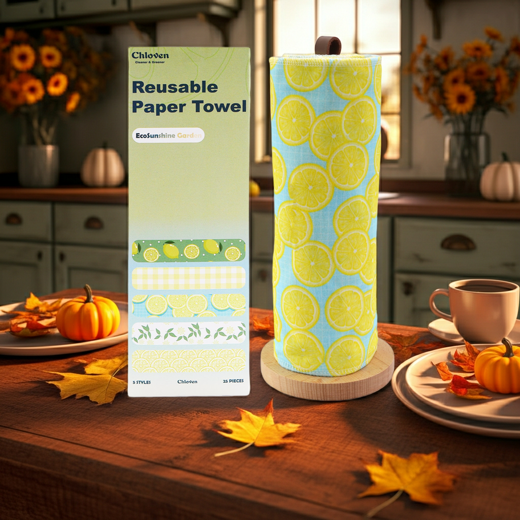 Chloven 25-Pack Reusable Paper Towels – Washable Cotton Cloth Napkins with Durable Cardboard Roll | Eco-Friendly, Zero-Waste Alternative to Disposable Paper Towels