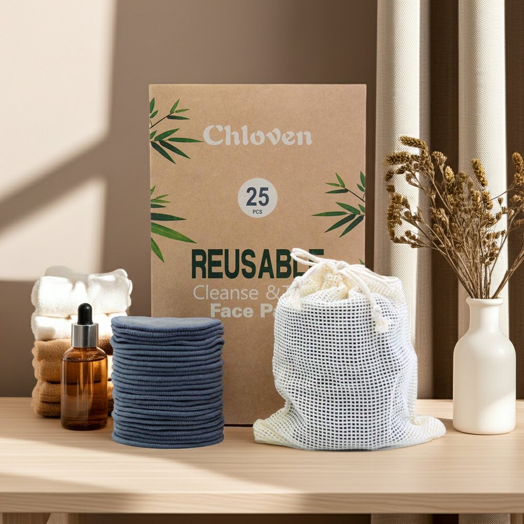 This set includes 25 charcoal bamboo and cotton makeup remover pads, a cotton laundry bag. The product is washable and reusable to reduce the waste of resources. This pad set is portable due to its size and light weight.These Makeup Remover Pads are stitched together to prevent slipping and dragging against your skin.