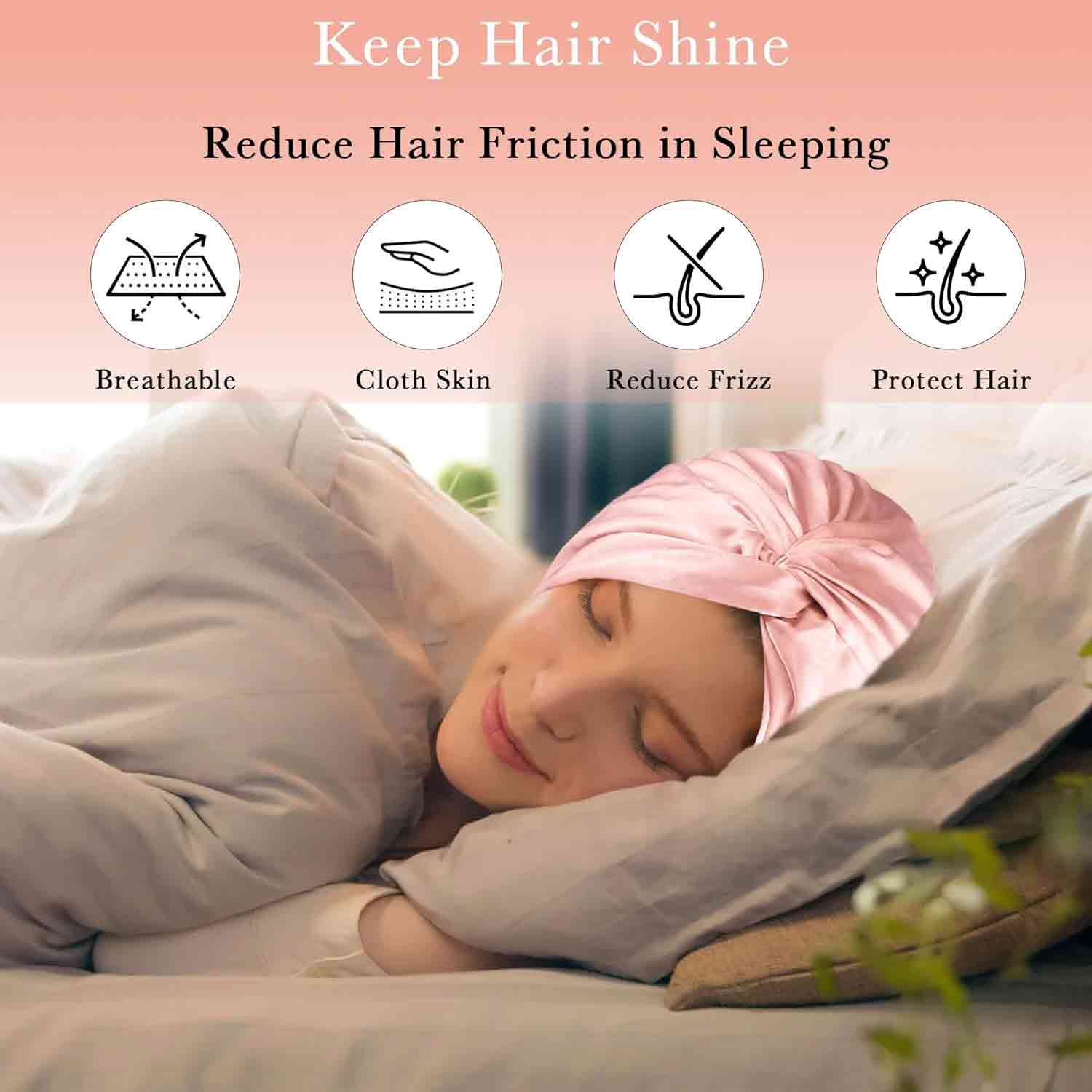 - Friction-Free Hair & Scalp Care:The silk hair bonnet for sleeping naturally regulates moisture: Its smooth surface absorbs excess scalp oil while retaining hair’s essential hydration. Reduces wash frequency by 40% and prevents split ends/frizz—ideal for curly hair and long hair