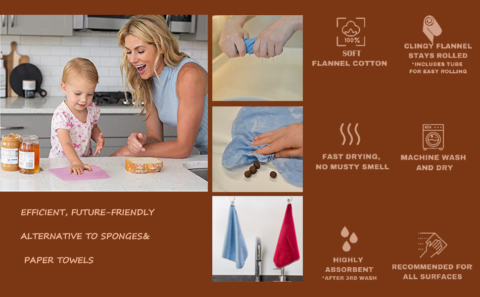 π² HIGH ABSORBENCY π² The double-sided flannel design of our paperless towels ensures excellent absorption, making them highly efficient at soaking up spills and drying dishes.The highly absorbent nature of our kitchen towels makes them ideal for cleaning up after your furry friends.